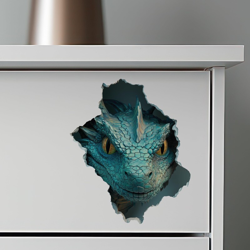 • GREAT DESIGN: Bring the allure of fantasy to your space with the Teal Dragon Decal, a wall hole sticker featuring a captivating 3D effect of a teal dragon breaking through the wall! Crafted from premium, durable vinyl, this decal ensures long-lasting vibrancy and is easy to apply and remove without damaging your walls. Perfect for bedrooms, offices, or gaming rooms, it adds a unique, eye-catching element to any decor. Instantly elevate your room’s ambiance with this striking teal dragon decal that breathes life and adventure into your walls!