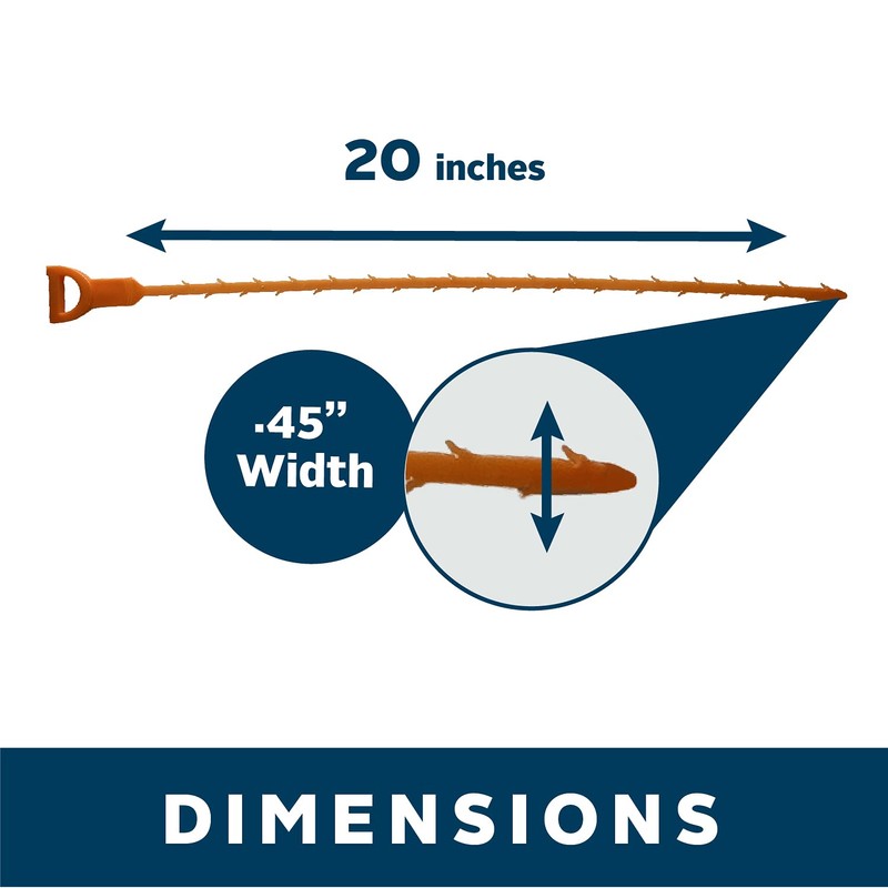 - DRAIN CLOG REMOVER: This 22" long flexible plastic barbed snake removes hair, debris and other gunk that builds up in sinks, catches, and drains