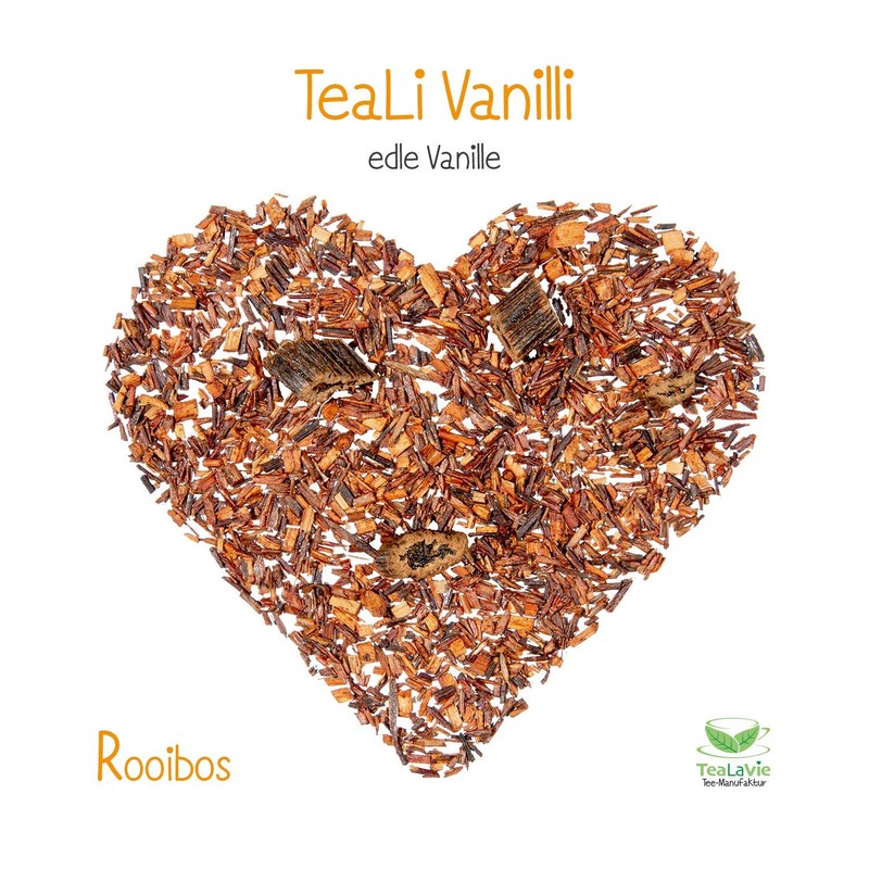 Tea Li Vanilli - Rooibo tea, flavour, vanilla || Sweet tooth - rooibo tea, caramel pieces (skimmed condensed milk, sugar, glucose syrup, butter fat, humectant: sorbitol syrup, emulsifier: mono- and diglycerides of fatty acids), aroma.