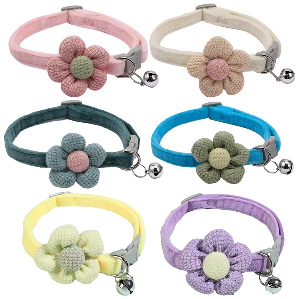Tealight Gold Candle Holders, Cute Cat Collars with Flower Design, Adjustable Pet Collars for Cats and Dogs, Soft Mohair Material, Includes Bells, 6 Pcs Set in Pink, Yellow, Green, Blue, Purple