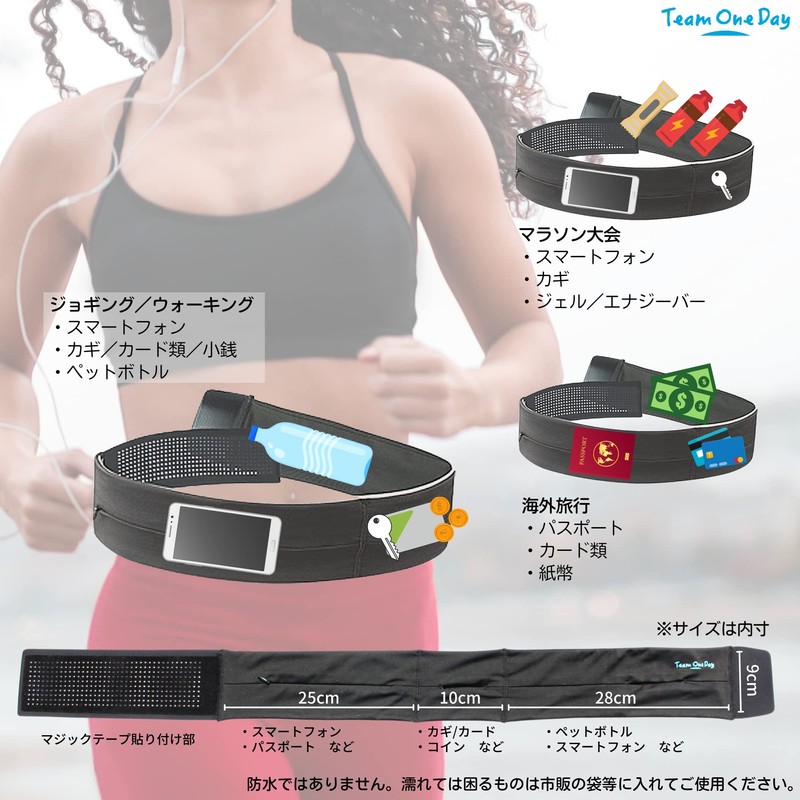 A running pouch that fits your body even if you put your smartphone or a plastic bottle, and it will not shake easily. The stretchy material feels great on the skin, so you can enjoy everyday jogging and walking.