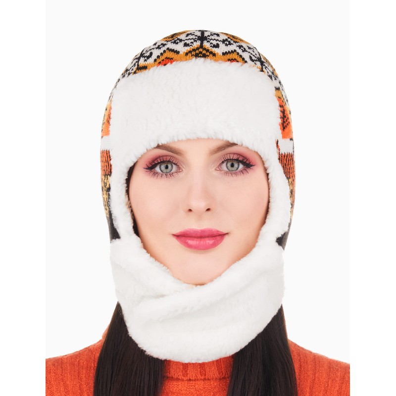 Team Snowflake Winter Trapper Hat for Women - Fun Ushanka Hat with Ear Flaps, White - Orange, One Size