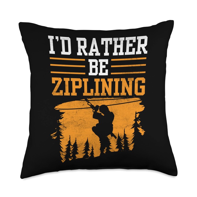 Team Ziplines Zipliner Zip Fun I'd Rather Zipline Sports Hobby Sayings Throw Pillow, 18x18, Multicolor
