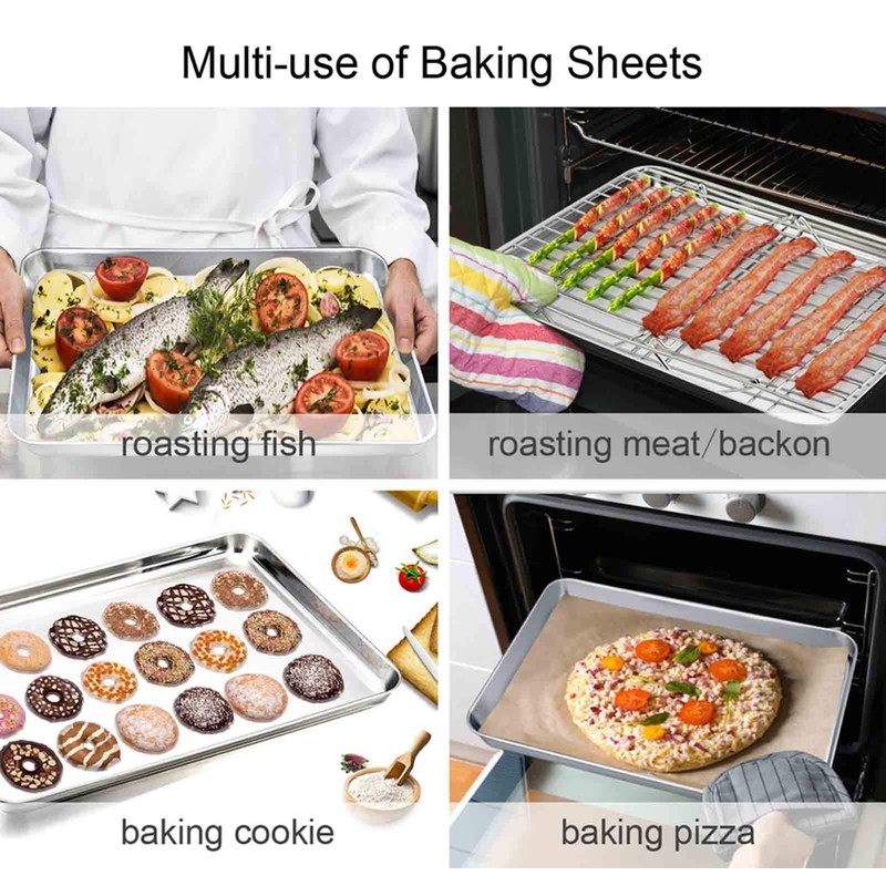 - 🥓HEALTHY MATERIAL: TeamFar baking sheet pan and wire cooling rack with no lead or any other toxic substance, Made of pure stainless steel, No worry about coating peel off or any toxic material leaching into food, Great replacement of aluminum pan and nonstick rack, Healthy and safe for daily use