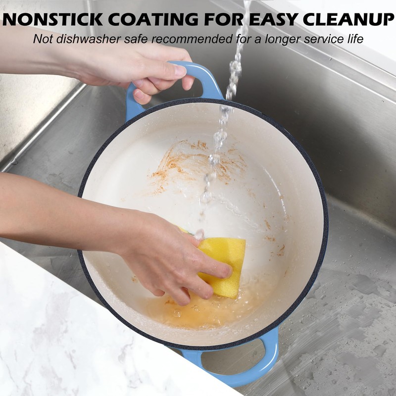 - NON TOXIC & LONG-LAST - TeamFar 7QT Dutch Oven is made of premium cast iron core coated with non-stick enamels, No toxic substance or harmful chemicals leaching into food, Providing healthy and safe cooking life, This dutch oven is built to long-last, a sturdy feel shows outstanding craftsmanship, No worry about rust or corrosion, and no seasoning needed to make maintenance straightforward
