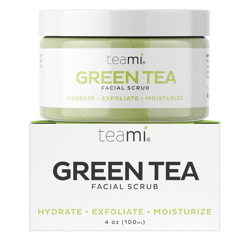 Teami Green Tea Facial Scrub – Organic Exfoliating Cleanser for Gentle Hydration, Deep Cleansing, Smooth Skin, and Revitalized Skin Tone