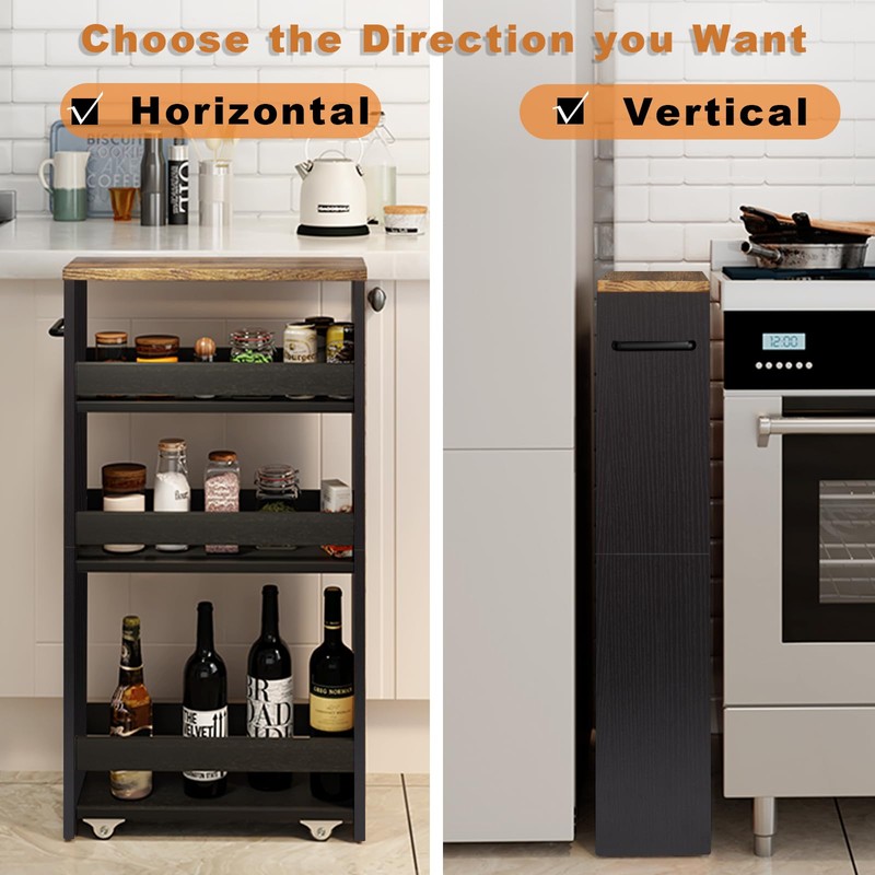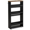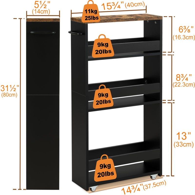 - 【Narrow Spaces Storage Design】This 4-tier storage cart is 5.5 inches wide and has plenty of storage space. It has 4 smooth wheels and 1 convenient handle. Can be used in closets, kitchens, bathrooms, garages, laundry rooms, offices, or washing machines and dryers.