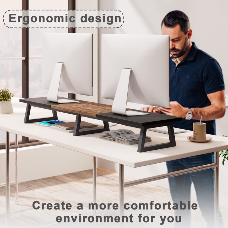TEAMIX 42 inch Large Dual Monitor Riser, Extra Long Monitor Stand Riser Wide TV Stand Riser Monitor Stand for 2 Monitors Wood & Steel Desktop Riser Desk Organization Home Office (Black+Brown, 42 inch)