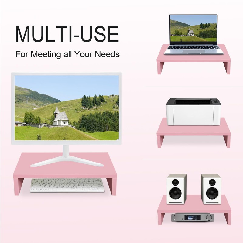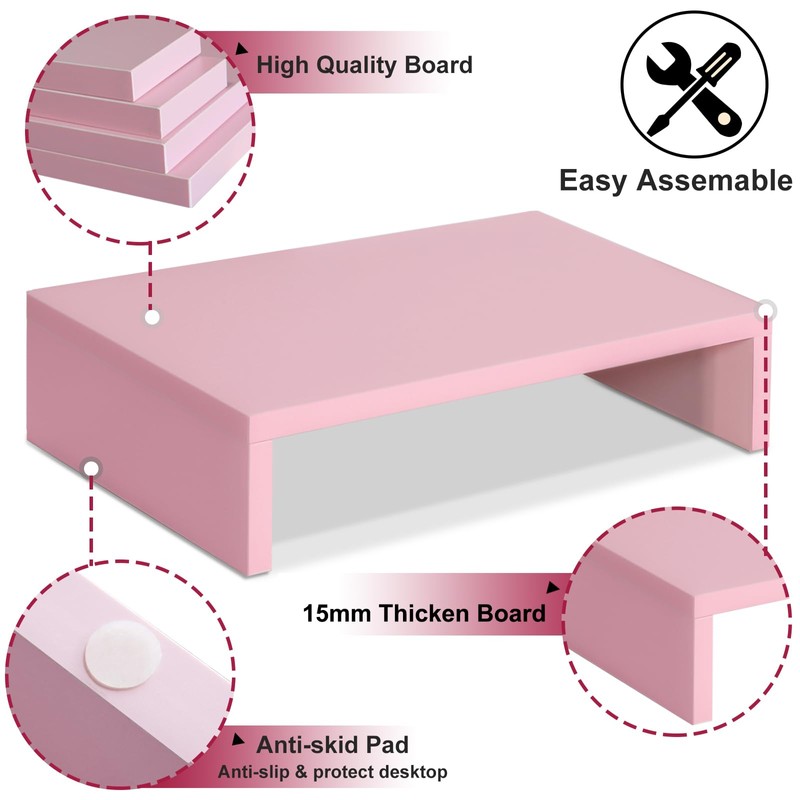 TEAMIX Pink Monitor Stand Riser, Wood Monitor Riser with Storage for Desk Small Monitor Stand TV/Screen/PC/Laptop Riser Computer Stand Desktop Shelf (Pink-14.2 inch)