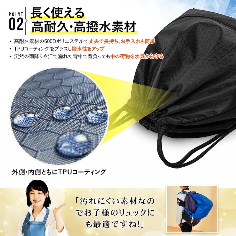 - Waterproof bag included: You can store wet items and shoes separately in the main space (bag size: 15.7 x 11.8 inches (40 x 30 cm), with gusset. It can hold large items such as wet bath towels, so it is useful for the gym, pool, sauna, etc. It is also translucent so you can see what is in and you won't have to worry about forgetting to take it off. Unlike the waterproof space in the bag, it's easy to use and hygienic