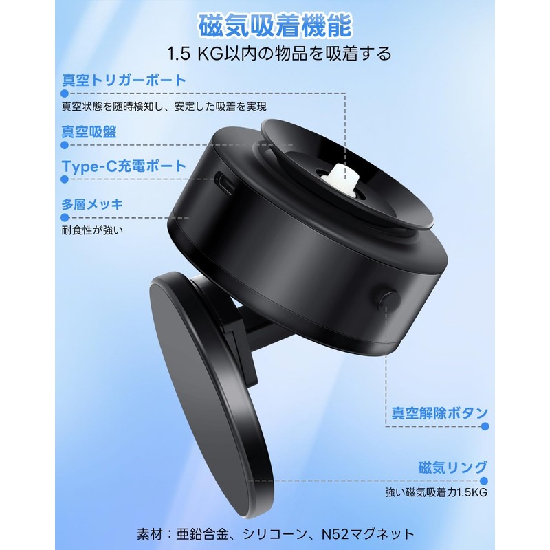 TeamSky Car Vacuum Smartphone Holder, Electric Vacuum Suction Type, Magnetic, Smartphone Stand, Multi-Angle Adjustment, Foldable, Cell Phone Holder, Strong Magnet, Super Strong Suction Power, 3.3 lbs