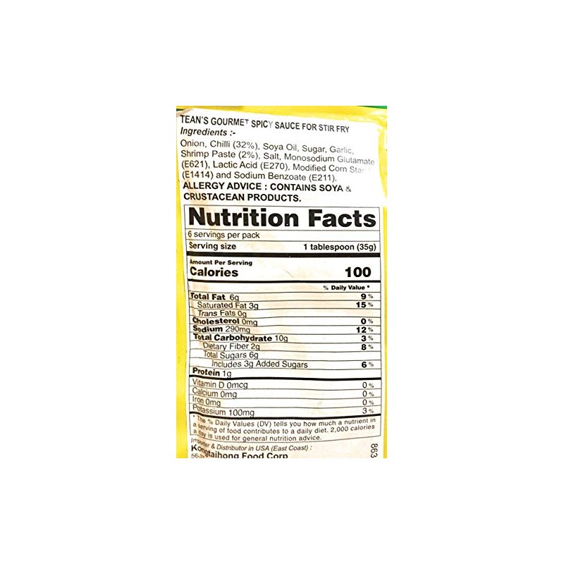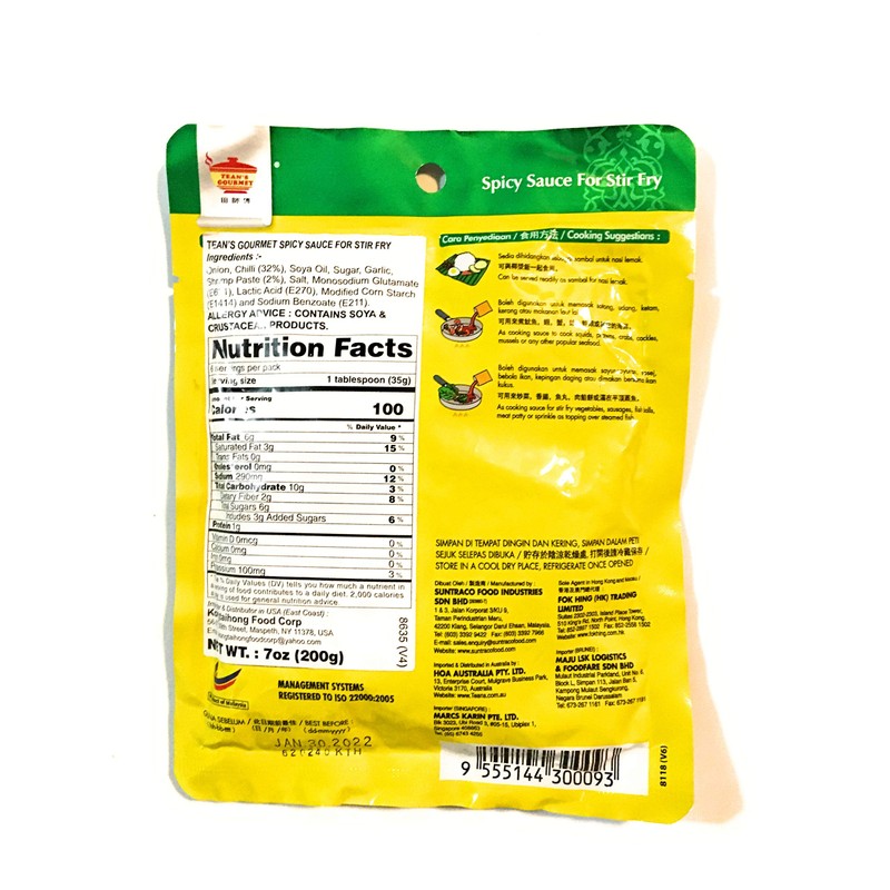 Tean’s Gourmet Sambal Tumis Spicy Sauce For Stir Fry 7 Oz-2 Pack