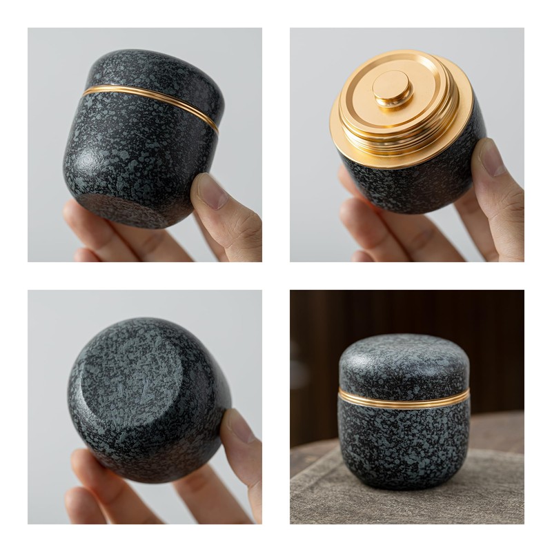 TEANAGOO Ceramic Matcha Tea Container, Portable Mini Matcha Storage Container with Aluminium Alloy Lid, Double Seal for Freshness, 2.8 oz, Ideal for Travel, X1, Charcoal Grey