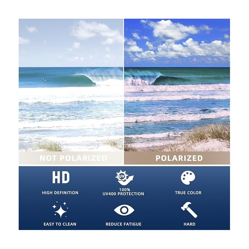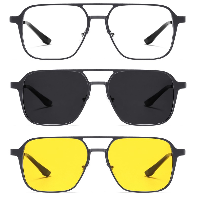 - 【3-in-1 Lense】There are 3 pieces lenses in one pair of glasses:the grey polarized UV400 protection lens for outdoor.They can block glare reflected off of roads, water, snow, and other horizontal surfaces. The yellow night vision lens for night driving. The clear demo lenses for daily time.
