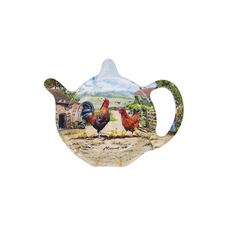 Teapot Shaped Cockerel & Hen Plastic Teabag Tidy Dish Holder