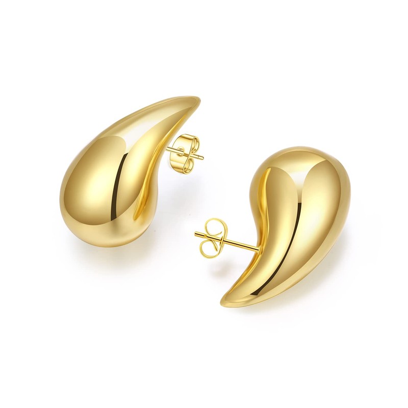 Tear Drop Earrings For Women, Chunky Gold Hoop Lightweight Hollow Eardrop Trending Oversized Statement Pierced Polished Hypoallergenic Ear Studs Gift Jewelry(Gold)