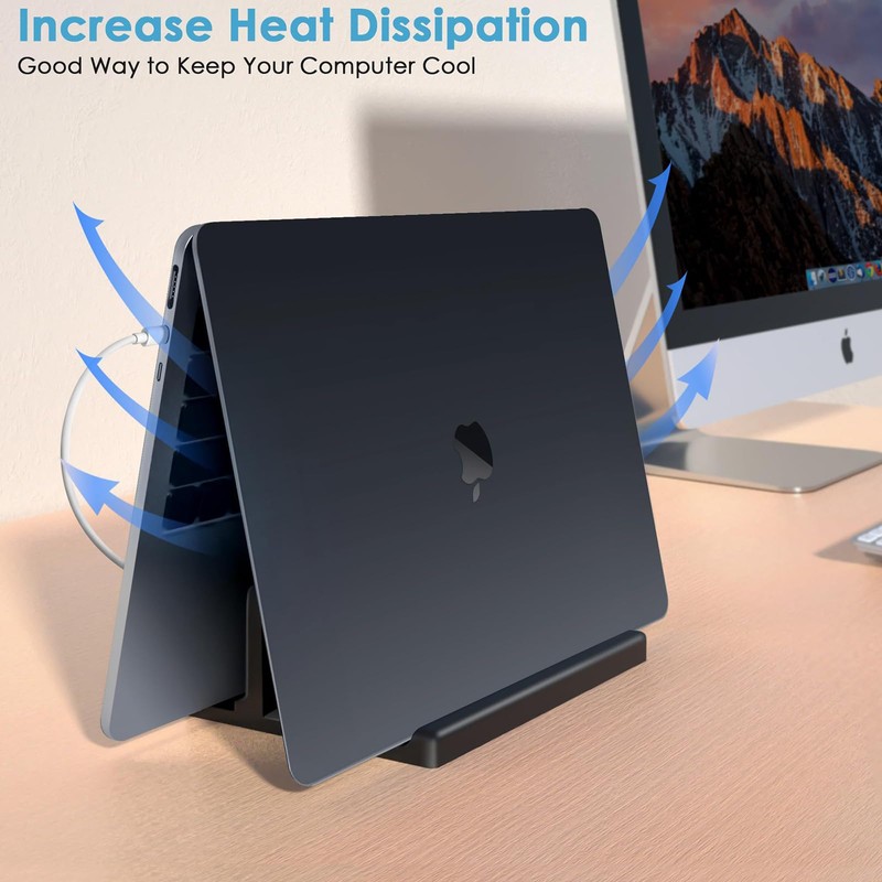 - 【Durable and Sturdy】The laptop holder for desk is designed with ergonomic principles and has undergone rigorous stability testing to securely hold your laptop. Each slot is equipped with a non-slip rubber lining at the bottom to prevent scratches. You don’t need to worry about your laptop being damaged or falling.