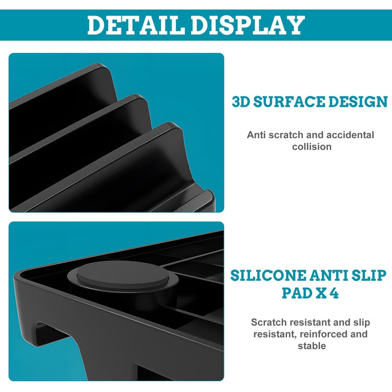 - 【Size】This vertical laptop holder measures 16.2 * 14.5 * 5.7 cm, with 3D curved edges to prevent scratches and bumps. There is enough space between each slot to store devices, ensuring adequate airflow and keeping the laptops spaced apart.