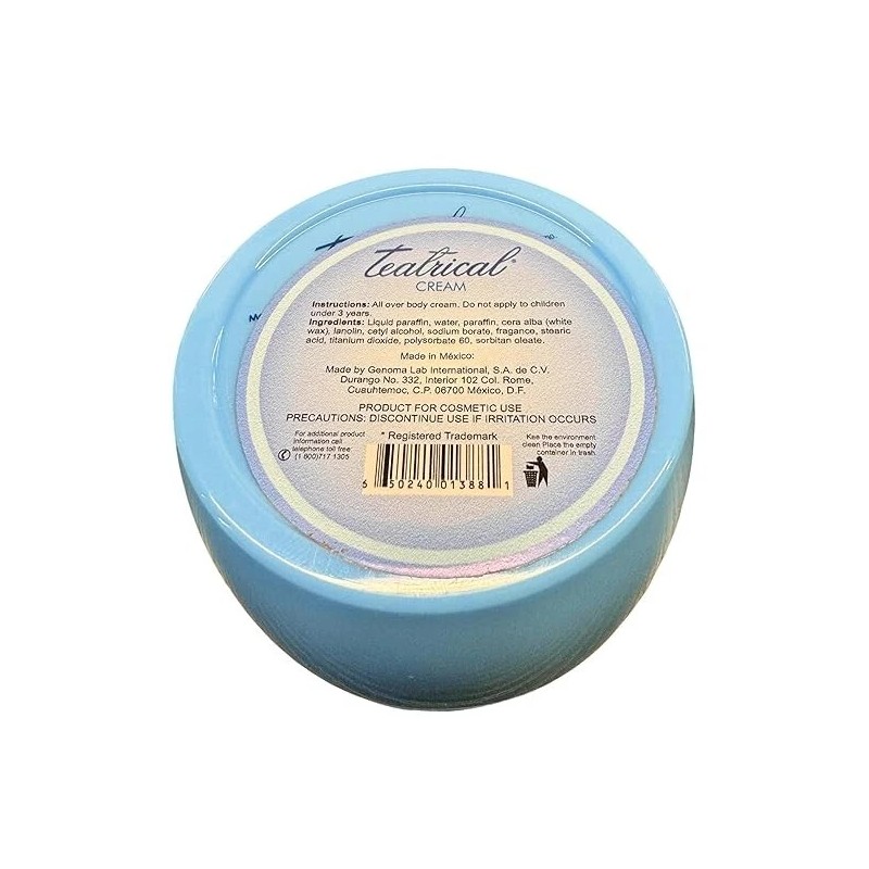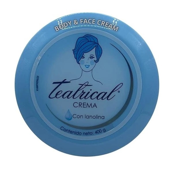 Product Description: Indulge your skin with the luxurious hydration of TEATRICAL Crema con Lanolina (Cream with Lanolin) 400g. This rich, velvety cream is designed to nourish and soften your skin, leaving it feeling silky smooth and rejuvenated. Infused with the natural emollient properties of lanolin, this cream provides deep moisture, making it an essential part of your daily skincare routine. Benefits: Deep Moisture: Lanolin provides intense hydration, helping to keep your skin soft and smooth. Nourishing Formula: Enriched with ingredients that help to rejuvenate and nourish your skin. Smooth Texture: The rich, creamy texture glides on easily, absorbing quickly without leaving a greasy residue. Versatile Use: Ideal for daily use on hands, body, and face, making it a versatile addition to your skincare collection.