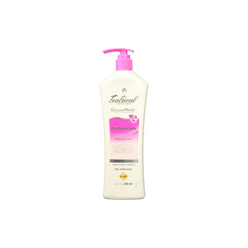 TEATRICAL - TEATRICAL Crema Corporal Ultra Humectante, Con células madre de flor buddleja davidii, Botella con 400ml. ⭐ Calidad premium certificada con excelentes reseñas. Diseño ergonómico y funcionalidad excepcional. 🔥 Alta demanda - Stock limitado. Ideal para quienes buscan lo mejor en calidad y estilo. Producto auténtico con satisfacción total asegurada. ¡No te quedes sin el tuyo y aprovecha esta oportunidad única!