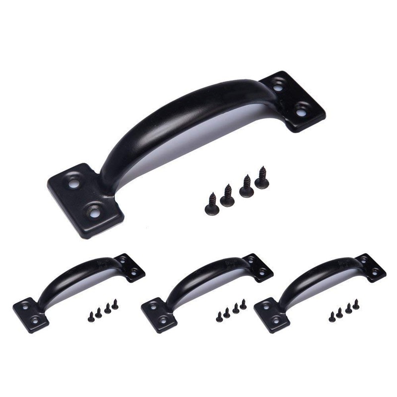 Tebery 4 Pack Utility 6-1/2 Inch Pulls in Black Metal Gate Handle