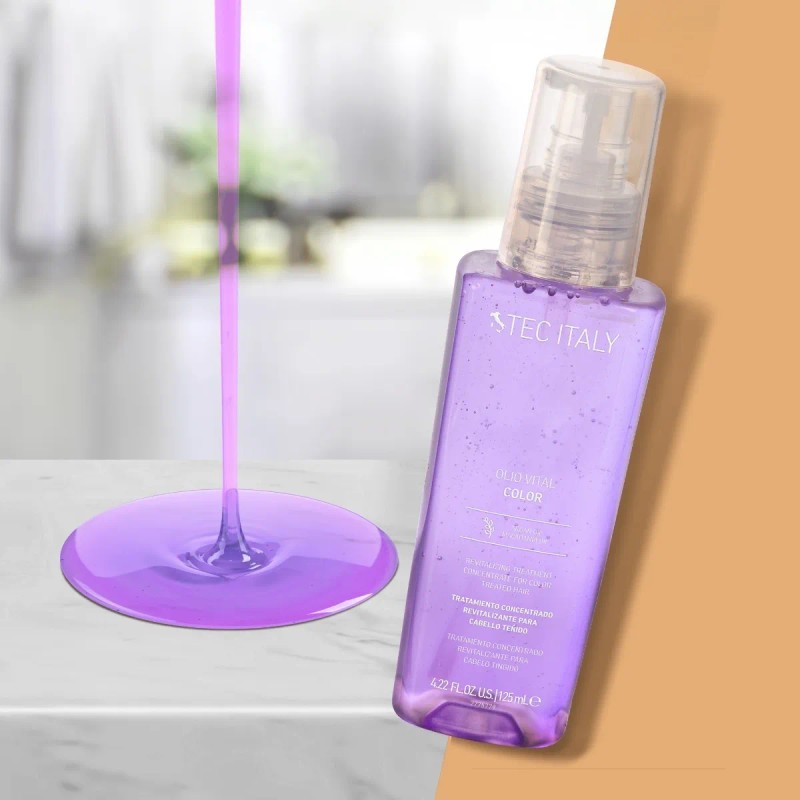The shampoo gently cleanses while delivering hydration from natural oils—like jojoba and argan—leaving hair smooth and luminous. The conditioner seals in moisture and controls frizz, improving combability and manageability. Finally, the Olio Vital Color treatment is a concentrated oil blend with multiple plant extracts and UV protection (Tricel‑R complex), perfect for preserving hair color and imparting silky radiance.