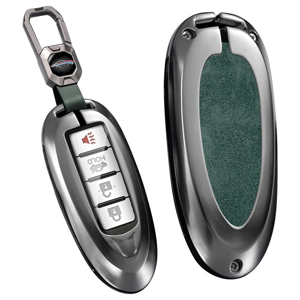 TECART 3/4/5-buttons Zinc alloy Key Fob Cover Case Protective Fit For Nissan Altima Rogue Maxima Sentra Infiniti Armada Sedan Murano Pathfinder Leather Smart Key Fob Dark green