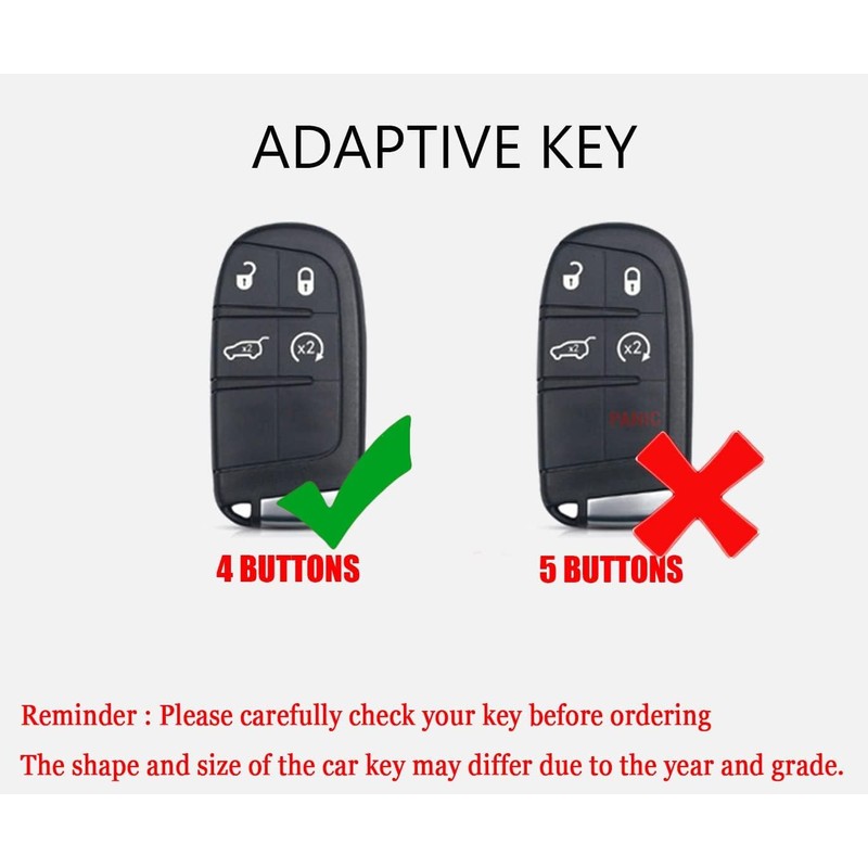 - đăCompatibilityă:Car key case cover Fit for Jeep Dodge Ram 1500 Challenger Durango 4 button smart auto key.(The above models are ref only, please refer to the keys in 2nd pic before ordering.)