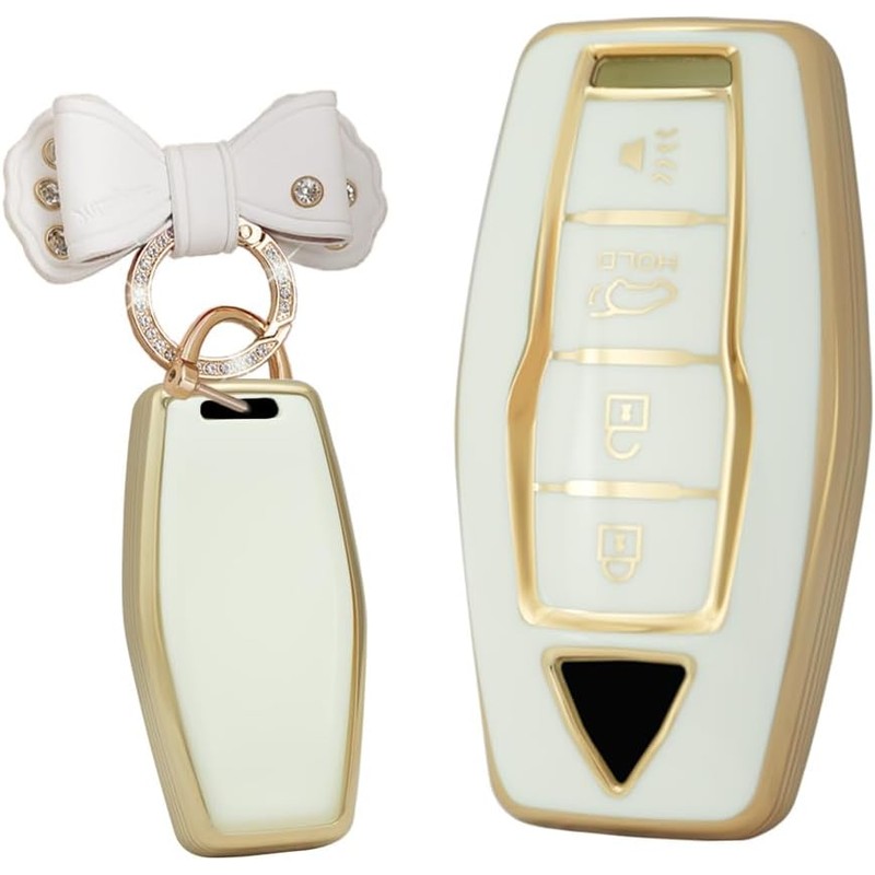 TECART Intelligent Key Cover Fit for Mitsubishi Outlander 2021 2022 2023 Soft TPU Prevent Scratch Key 4 Button White