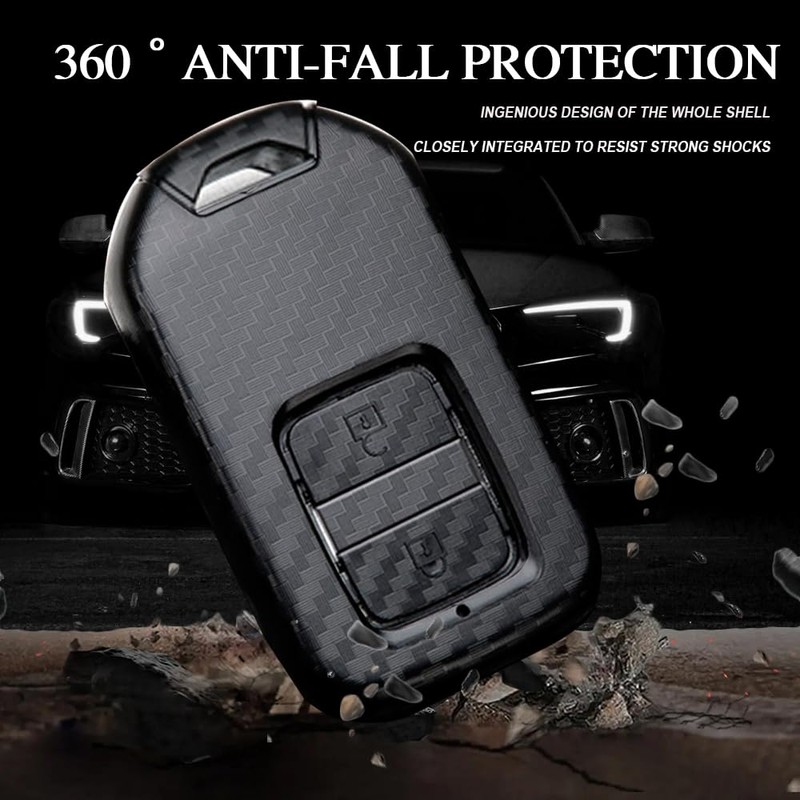 TECART Key Case Cover Fit for Honda Civic Key Fob Keychain Key Shell Holder Carbon Fiber ABS Accessories 2/3/4 Buttons, 2 Button-Black a, 2 Button