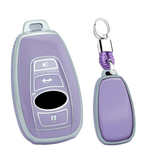 TECART Key Fob Cover Fit for Subaru Forester Outback BRZ Legacy Ascent CrossTrek Soft TPU Key Shell Accessories 4 button, Braided Keychain-purple, 4 button