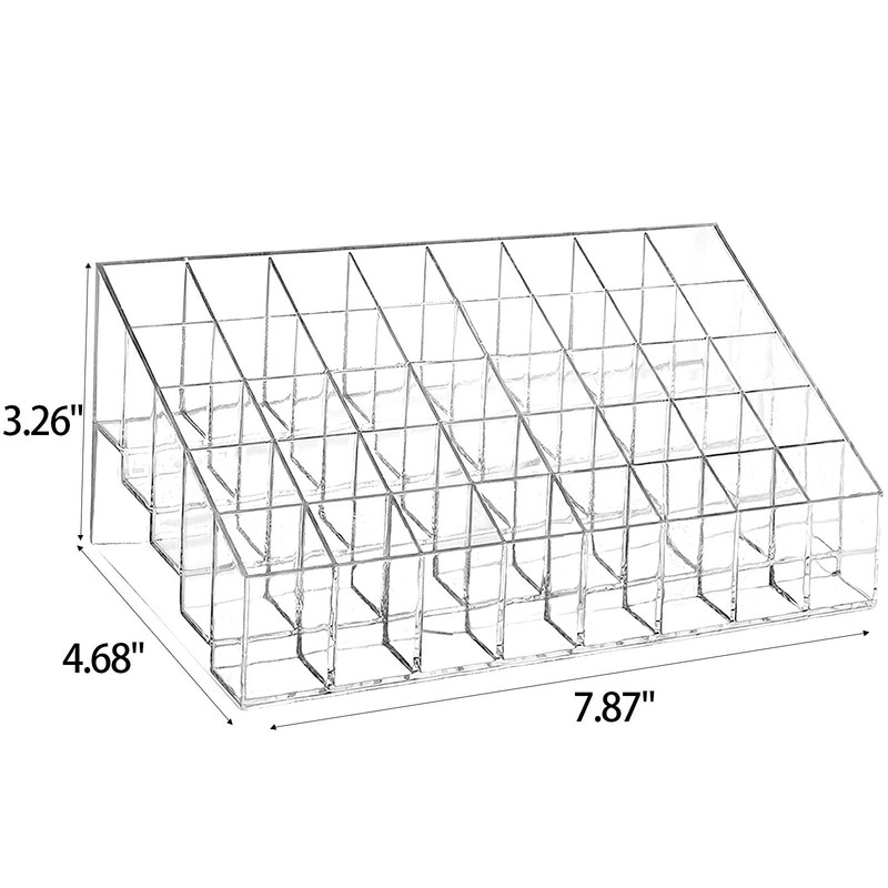 - Size: 7.87x4.68x3.26inch(LxWxH), each slot 0.86" wide,0.9" length,1.36" deep, wider lipstick holder for round, square, irregular, small, tall lipsticks glosses tubes