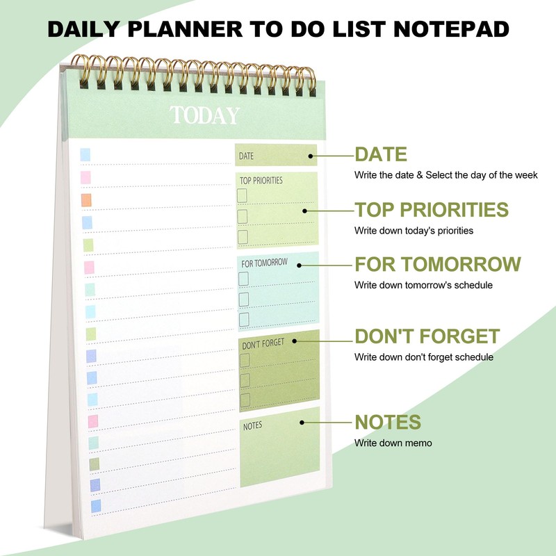 • Durable Spiral Binding with Tear-off Pages:Daily planner uses reinforced spiral binding that lays completely flat for comfortable writing. Each page has precise perforations for clean tearing of completed task sheets without damaging the binding, accompanying you through entire planning cycles.