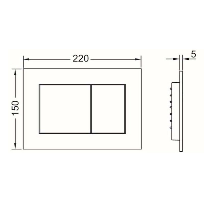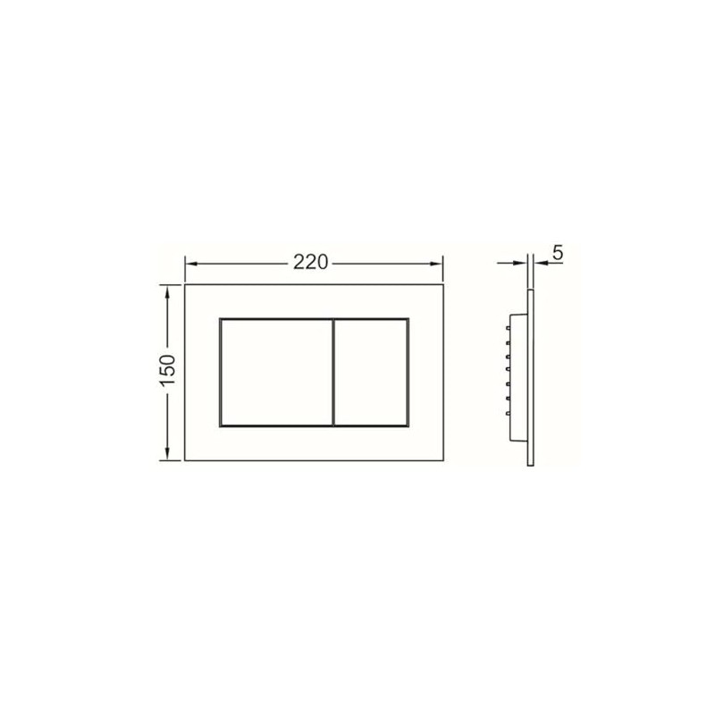- Very flat plastic actuator plate with two rubber buffered actuation buttons