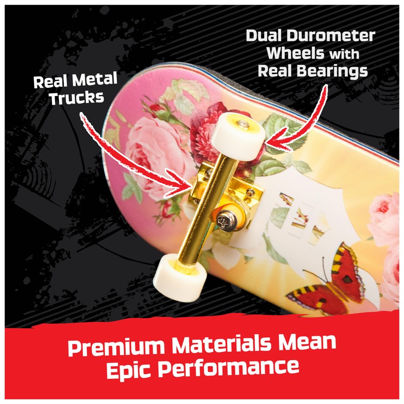 - PRO SERIES BOARD: Professional grade finger skateboard with real 5 plywood deck, dual durometer wheels with bearings, polished metal trucks and foam pattern grip. Are you ready to go Pro?
