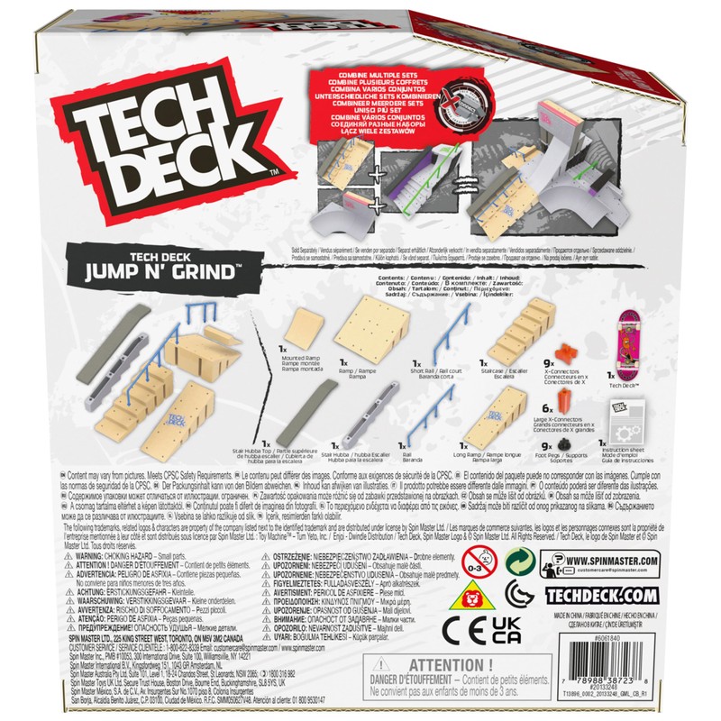 Grab some air with Tech Deck, the real deal fingerboards featuring authentic graphics from real skate companies! The Jump N' Grind X-Connect Park Creator ramp set includes everything you need to build an awesome custom park for you to perfect your finger skateboard skills. Set up different combinations with two rails, a staircase, hubba ledge, and ramps to learn and progress your tricks. Gap the stairs, slide the ledge, grind the rail, or set up and customize the spot in any way you like. Skate the park with the included exclusive Daniel Lutheran signature Toy Machine Skateboards pro fingerboard and add to your mini skateboard collection. Combine the park with other X-Connect compatible ramps, such as the Bowl Builder or Nyjah Skatepark ramp sets (each sold separately) to build the ultimate fingerboard park for you to shred. Use the Jump N' Grind X-Connect Park Creator with your Tech Deck fingerboard collection or Tech Deck BMX (each sold separately). Tech Deck mini skateboards for fingers and ramp sets make the perfect gift for girls toys age 6-8 who love small toys and cool toys or as an alternative to toy cars as a boys toys age 6-8 item. If you want real skate graphics from real skate companies, then it has got to be Tech Deck start small, go big and collect them all.