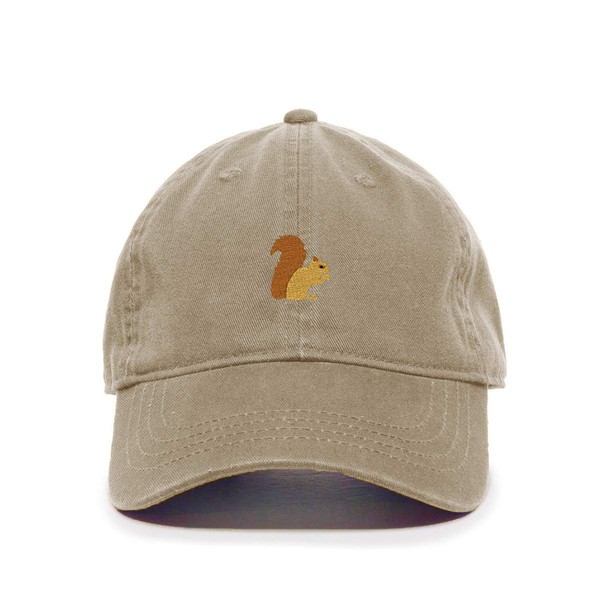 Tech Design Squirrel Baseball Cap Embroidered Cotton Adjustable Dad Hat Khaki