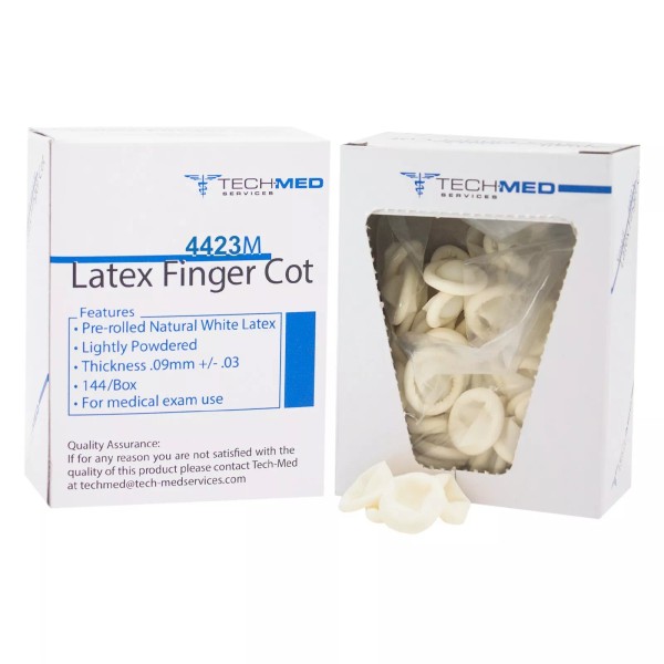Tech-Med  Pre-Rolled Natural White Latex Finger Cots Medium Disposable 144/Bx