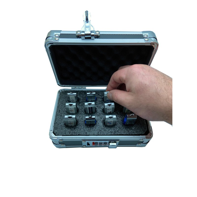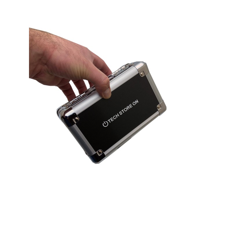 - Rigid Durable Solid Enclosure: aluminum rugged box with a firm lid and a combination lock.