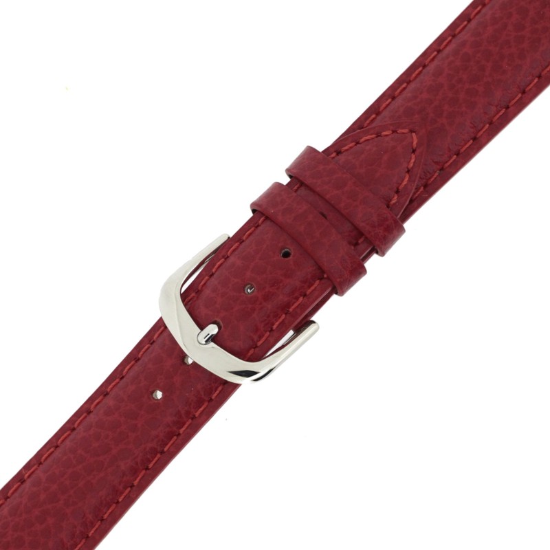 - 16mm Red Watch Band Genuine Leather Calf Smooth Padded with Matching Stitching