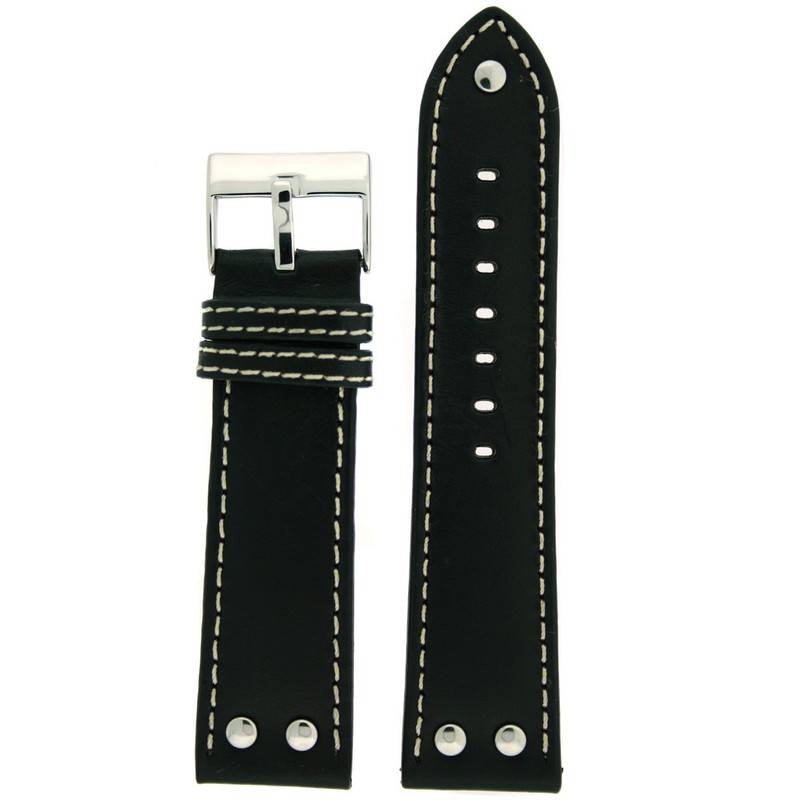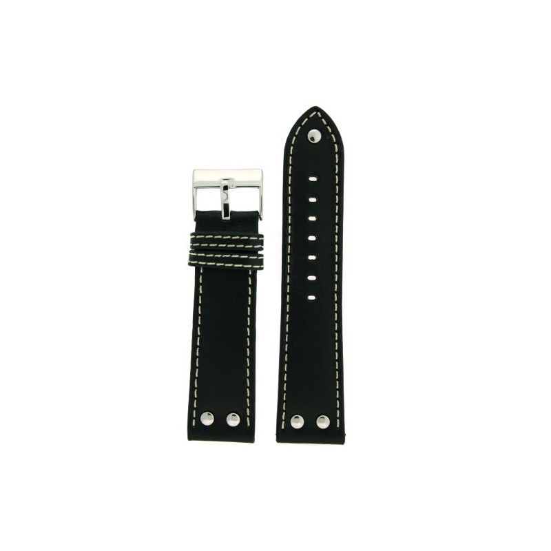 Tech Swiss Pilot Watch Band with Silver-tone Rivets Black 24 millimeter
