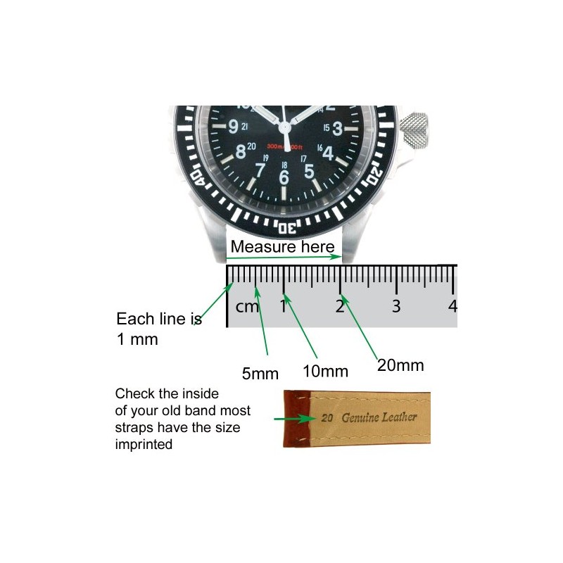 Tech Swiss offer a full line of premium quality replacement watch bands. The strap featured is genuine Italian Calfskin leather, smooth leather, metal tabs at the end of band, silver-tone polish finish Stainless Steel buckle, Mens-standard length, straight cut, soft leather lining and contrasting white stitching for durability. Watchband is available in sizes 20mm, 22mm and 24mm. Tech Swiss offers a full line of watch bands in calfskin leather, crocodile, alligator, lizard, ostrich, shark and sting-ray. We carry a wide range of straps lengths in including Ladies-standard, Mens-standard, Long, Extra- Long and XX-Long. Tech Swiss only uses the highest quality of materials including superior soft Nubuck and genuine leather linings. Our construction of the bands feature reinforced stitching around the band. We offer many combinations of styles, designs and finishes in buckles that are all Nickel Free. All of our straps include stainless steel spring bars. We are confident you will not find a larger selection of leather watchstraps in colors, sizes and lengths on the market. When ordering a watch band, please refer to the provided images to determine the correct size.