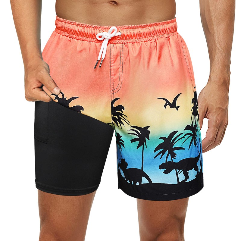 - Compression Liner Swim Shorts - Featured with elastic waistband and adjustable drawstring which can flexibly adjust the waistline to make sure your swimming trunks will not slip down when you enjoy your beach or water summer time. Double side pockets, liner pocket and one back pocket which can effectively storage wallet, key, cell phone or other small items