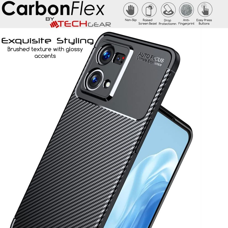 TECHGEAR Carbon Fibre Case for Oppo Reno 7 [CarbonFlex Case] Flexible, Shockproof, Ultra Slim, Soft TPU Protective Shell Cover with Carbon Fibre Detailing Designed For Oppo Reno 7 4G