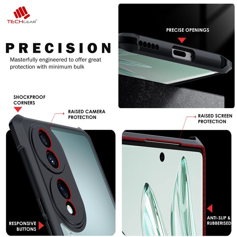 TECHGEAR Tough Case for Honor 70 5G [Fusion Armour] Premium Hybrid Tough Rugged Protective Bumper Case Heavy Duty Protection with Clear Back Designed For Honor 70 5G - Black