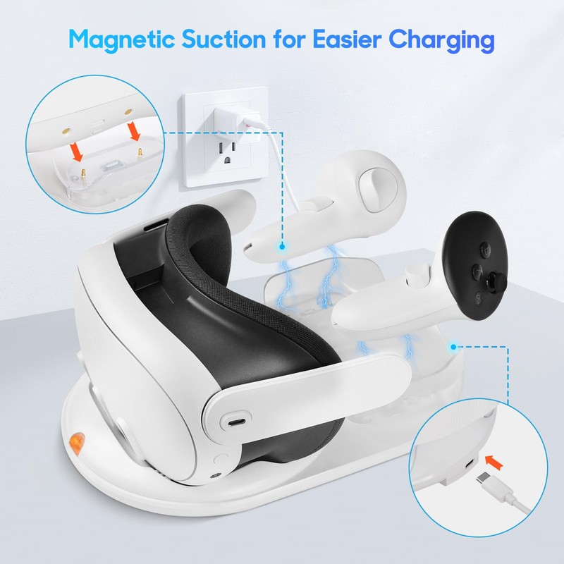 - Easy to charge -- put your meta quest 3 headset and controllers on the slots and they will get charged easily