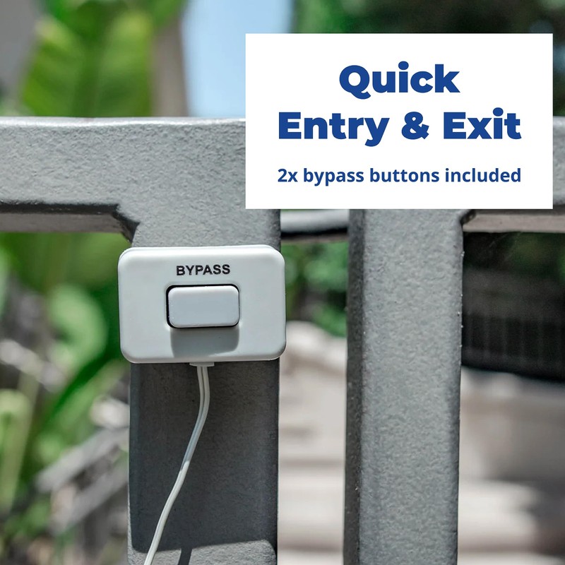 - Includes extra set of sensors and bypass reset button for use on both sliding glass doors and screen doors