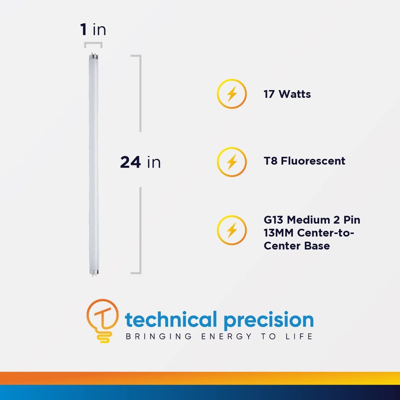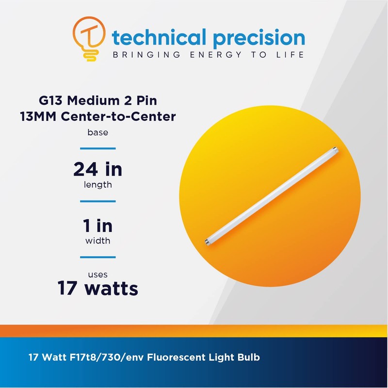 Technical Precision 17W Fluorescent Tube Light Bulb Replacement for Satco F17t8/730/env Light Bulb 24 Inches T8 Bulb - G13 Medium Bi-Pin Base - 3000K Warm White - 2 Pack