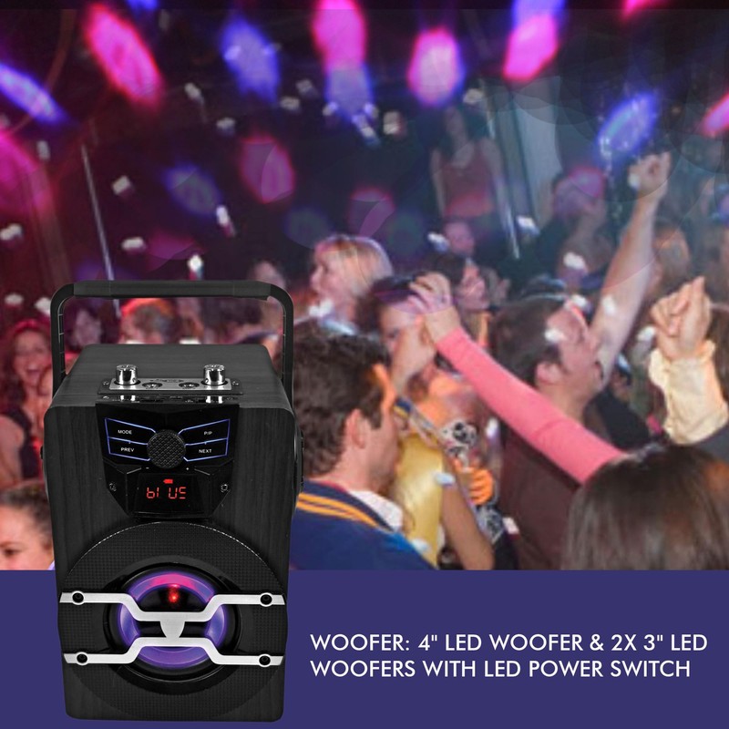 Technical Pro Portable 400 Watts Rechargeable Bluetooth Speaker with USB, SD Card, FM Radio & Karaoke Mic Inputs Perfect On-The-Go LED Speaker with 3-5 Hours Playtime - Mic and Remote Control Included