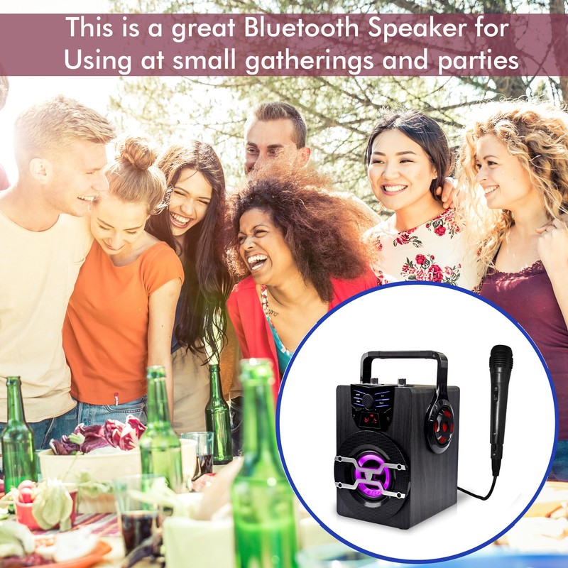 • FLASHING DJ LIGHTS: This bluetooth party speaker with lights features multi-color flashing disco LED party lights. True wireless stereo system adds life to any occasion, great for patio parties & night gatherings when colorful presence is noticeable.